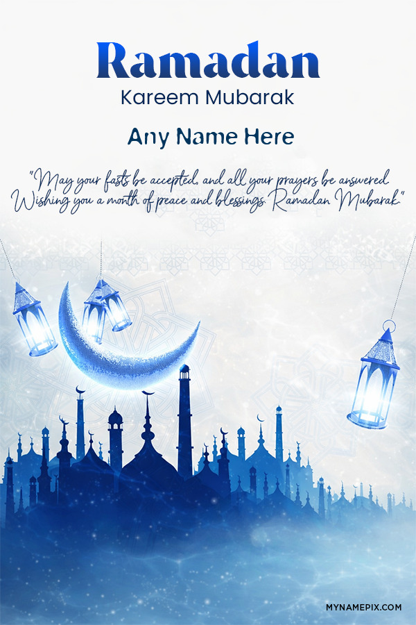 An elegant Ramadan Mubarak greeting card featuring refined design elements and personalized name text. Perfect for conveying spiritual warmth, faith, and heartfelt Ramadan wishes in a graceful and meaningful way.