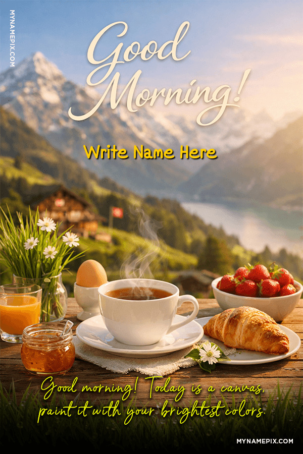 A refreshing Good Morning personalized name greeting card designed with soft sunrise light, realistic green grass, and a calm natural background. Includes a gentle morning quote to inspire positivity and peace at the start of the day. Ideal for digital sharing, social media, or high-quality print use.