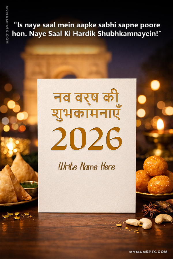 Happy New Year 2026 Personalized Name Wish Card with Elegant Design In Hindi