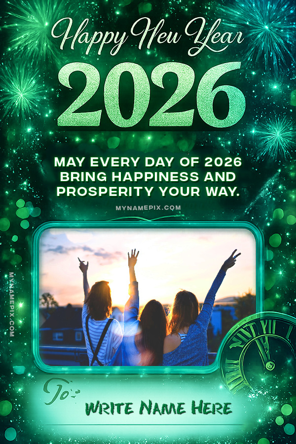Create a beautiful Happy New Year 2026 wish card and customize it with a name and photo. Share warm New Year greetings with your friends, family, and loved ones in a stylish and memorable way.