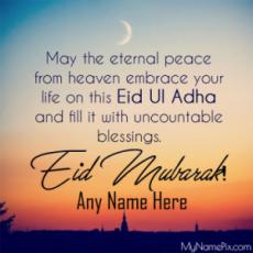 Add your name on Bakra Eid Mubarak status and make your WhatsApp status and Facebook story extra special and unique. Wish your friends and family in the best way with prayers.
